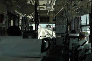 行く途中の乗り物、ゆとりーとラインという、一風変わった交通システムに乗る。