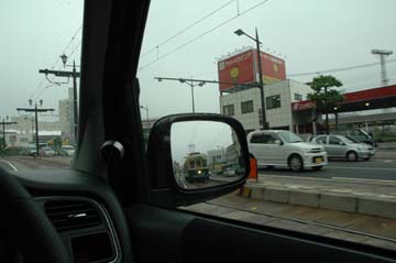 サイドミラーに映る市電