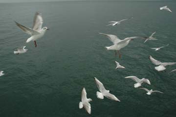 パンも無くなり、さて室内に戻るかと思っても、一向にかもめ達は撤収しない。それどころか、