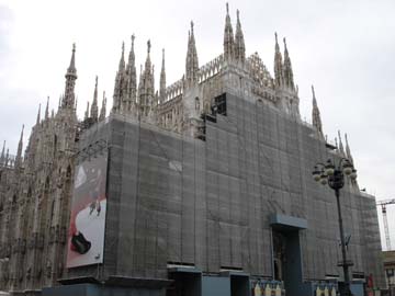 その後、ミラノのドゥオモ(イタリアでは、教会をドゥオモと言う)を見学。残念ながら修復中。