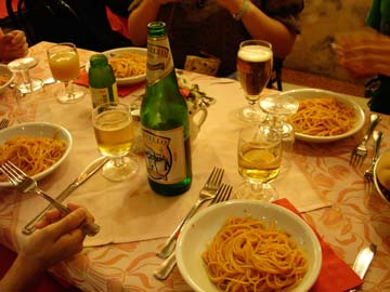 パスタとビール 夜の街並み