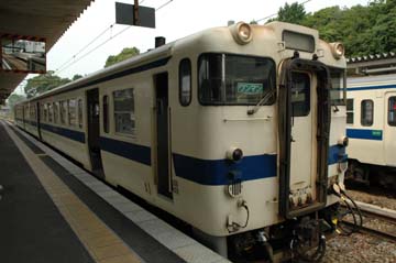 無人駅の海の中道駅 香椎駅停車中のキハ47