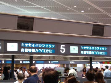 クラスカウンターの行列に並ばないで済むと思っていた。しかしよ〜く考えると、まだ航空券を