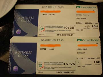 成田発香港行きCX501便 香港行きとバンコク行きの搭乗券
