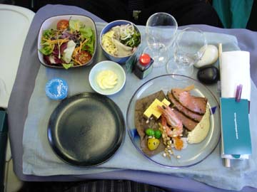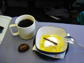 いつもなら機内食はプラスチックの器。でも今回はすべて瀬戸物の器。やはり違うなぁと思い