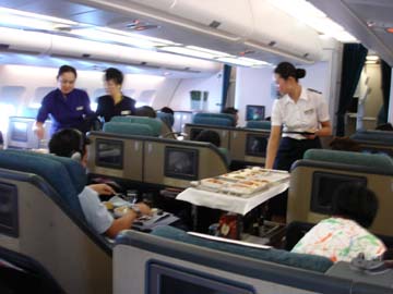 ここでも、長蛇の列となっているエコノミークラスの搭乗口とは別の、ファースト・ビジネスク