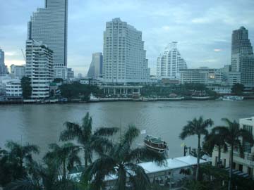 窓を開けると、そこにはチャオプラヤ川が。昨晩はあまり見えなかったが、川や対岸のホテルが