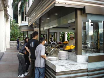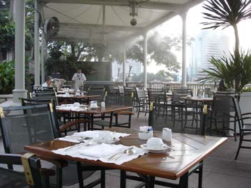 テラスに行く。ビッフェ形式でいろいろなものがある。さすが最高級ホテル、ウェイターも汚れひとつ