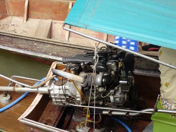 それもそのはず。タイで使われているこの手の船は、推進力は自動車のエンジンなのだ。