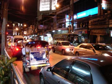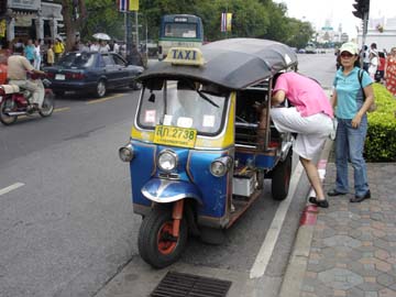 途中、タイ名物のトゥクトゥクに遭遇。トゥクトゥクとは、バイクを改造した三輪バイクのタクシー。
